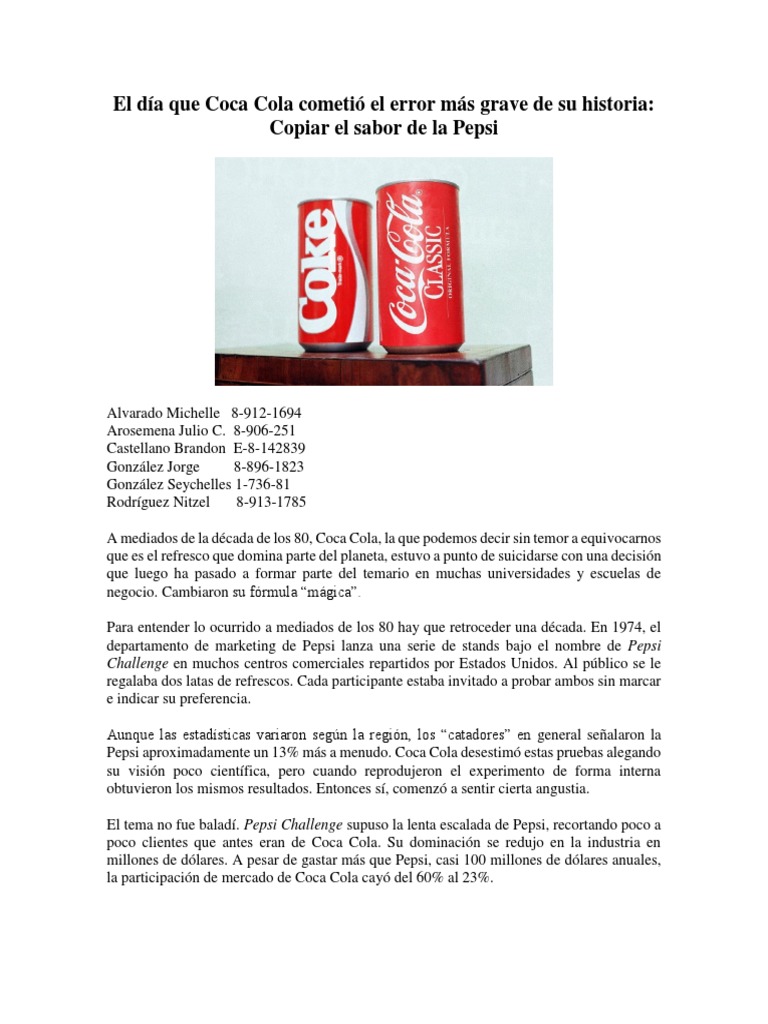 La coca cola es un refresco efervescente creado en 1886 la coca cola era usada como medicina principalmente para aliviar el dolor de cabeza y las náuseas y era un jarabe hecho con hojas de coca y semillas de cola hoy por hoy la coca cola es una de las bebidas más famosas y.